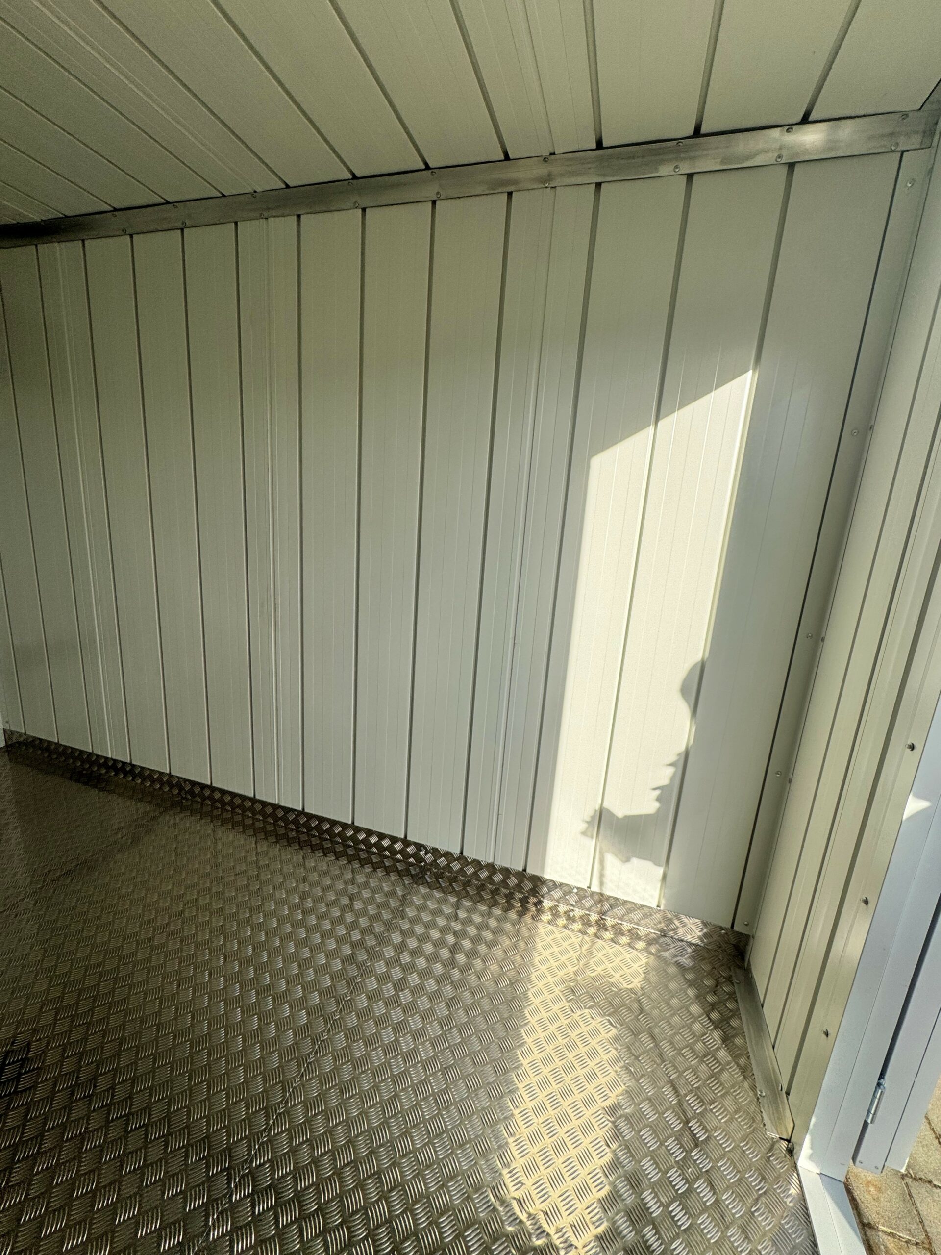 Der Standard-Bodenaufbau besteht aus 100 mm isolierten Sandwichpaneelen mit Aluminium-Riffelblech.